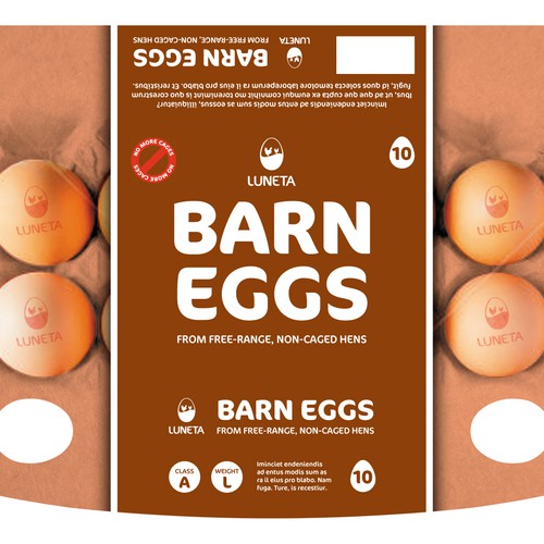 Luneta has also made a packaging label for barn eggs. This label explains that egg containers contain 10 A-class and large size eggs for the consumers. Image 2 shows the ultimate look of the packaging after storing 10 eggs inside the box.